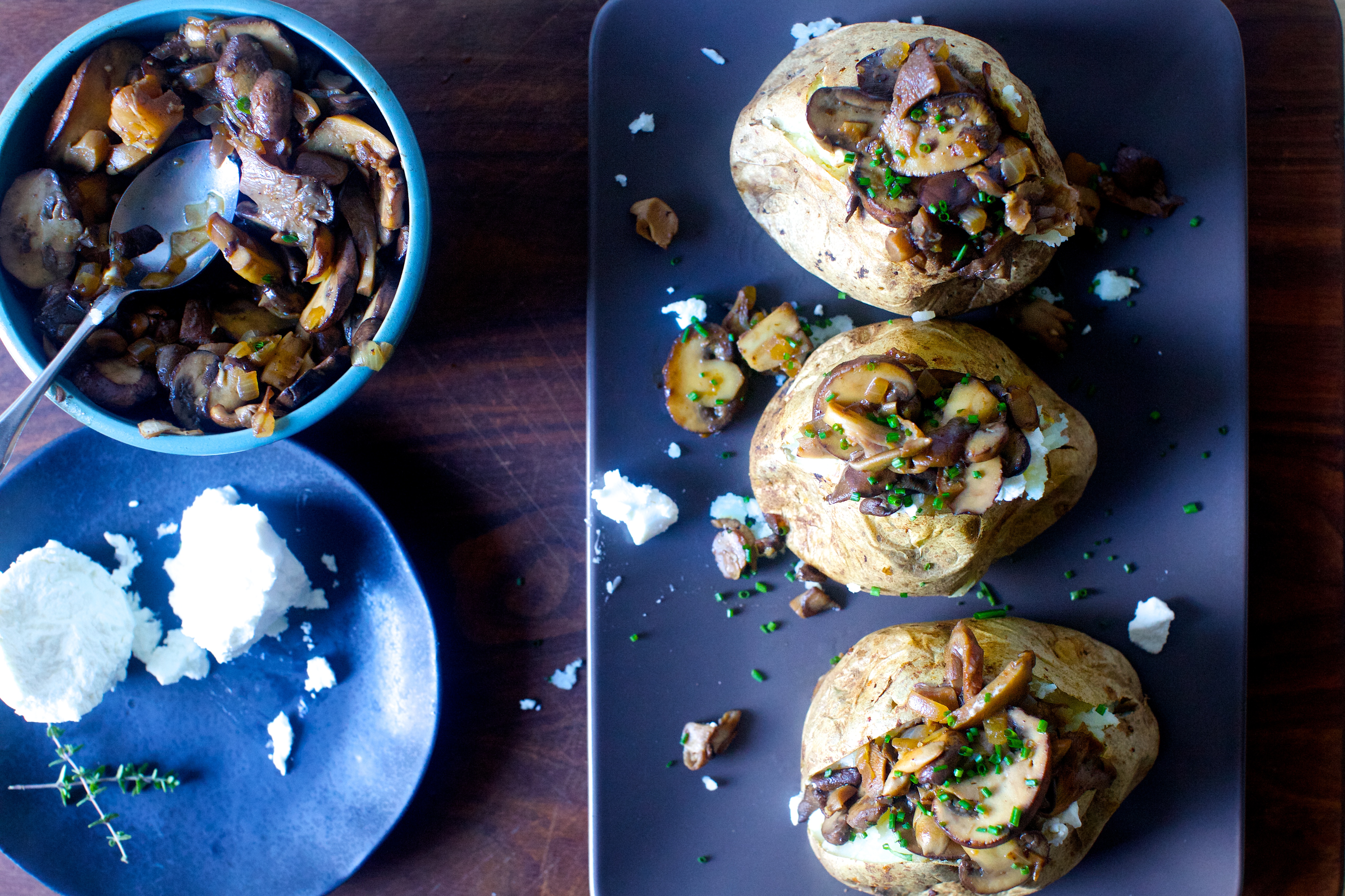 Prior to last week, I only liked baked potatoes two ways and the first was so weird, I usually had the decency to keep it to myself. Many years ago, I had an internship a couple blocks from a lunch place with a baked potato sub-menu, full of odd and awesome topping combinations. My favorite involved a marinated tomato-pepper salad, avocado, cheese and — yesss — ranch dressing and it was amazing and wonderful and stop looking at me like that because I have missed and longed for it since. The second way I like baked potatoes is equally troublesome, the classic with “the works” involving heaps of cheese, butter, sour cream, bacon, chives and blood pressure medication. I no longer eat them the first way because the sandwich shop is 250 miles from here and also it has since closed; I usually resist eating them the second way because if I’m going to have all of the fat and calories of a golden, glistening and salted pile of French fries, I’d rather have them in said French fry format.