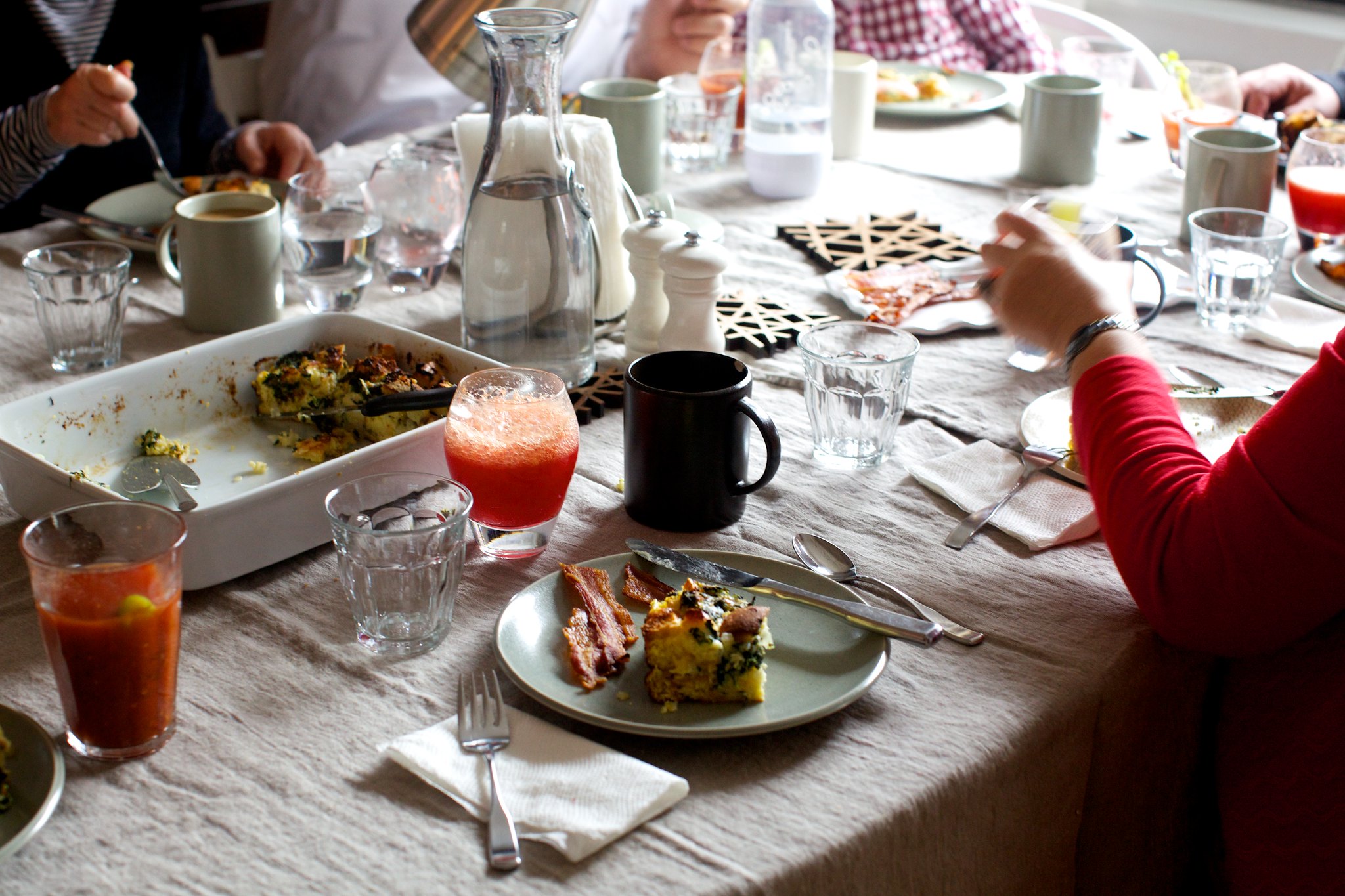 I take brunch very, very seriously, so seriously that I don’t go out for it very often because, you see, few places do it right. The scones are chalky, the fruit cups are nothing but soggy raspberries and unloved green melon, the yogurt is too sweet; the baked eggs are either hard-cooked or have clear, unsettling whites and the toast, it never comes. Am I a brat with nothing but First World Problems? Indeed I am, but I make a mean brunch.